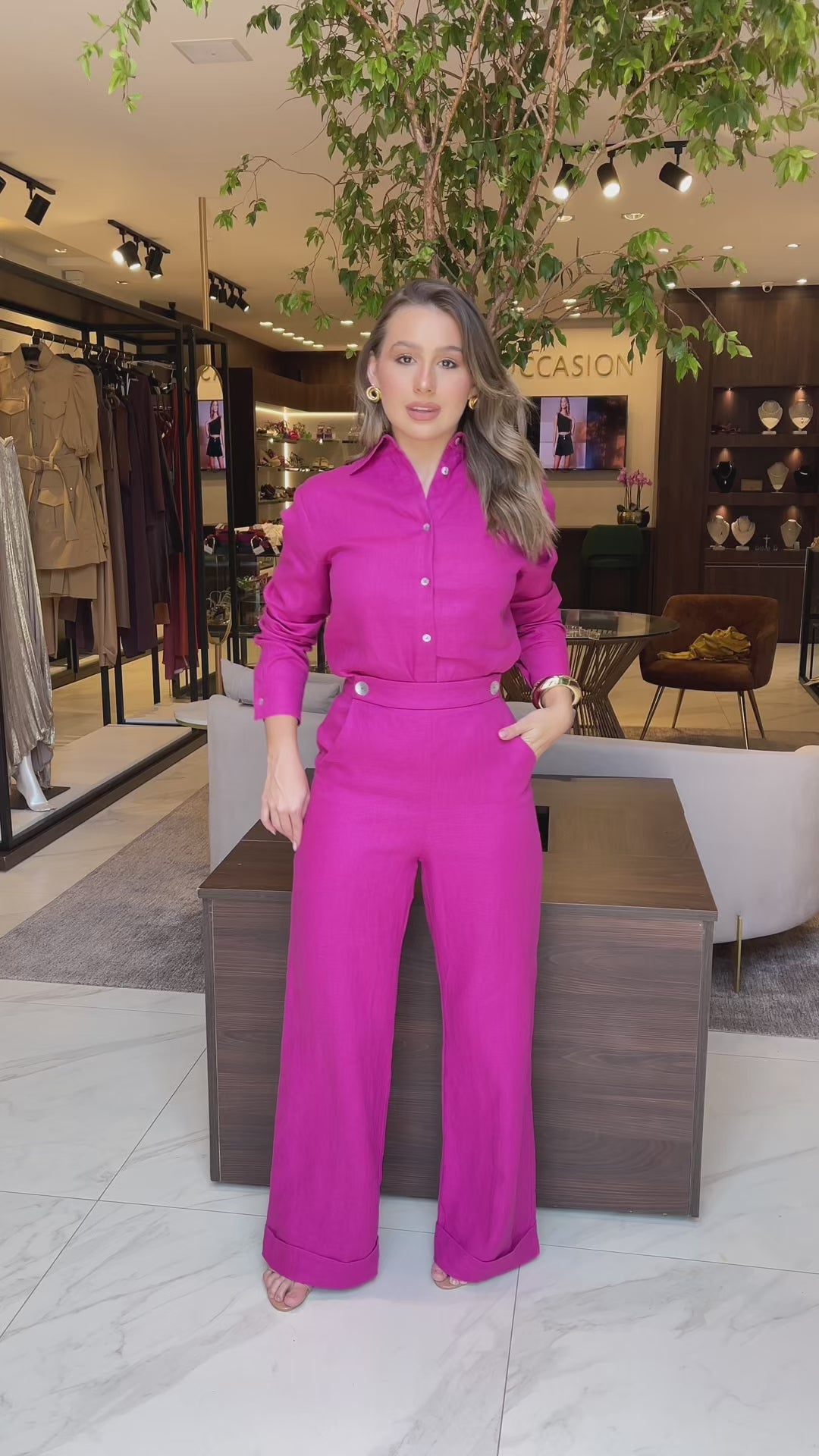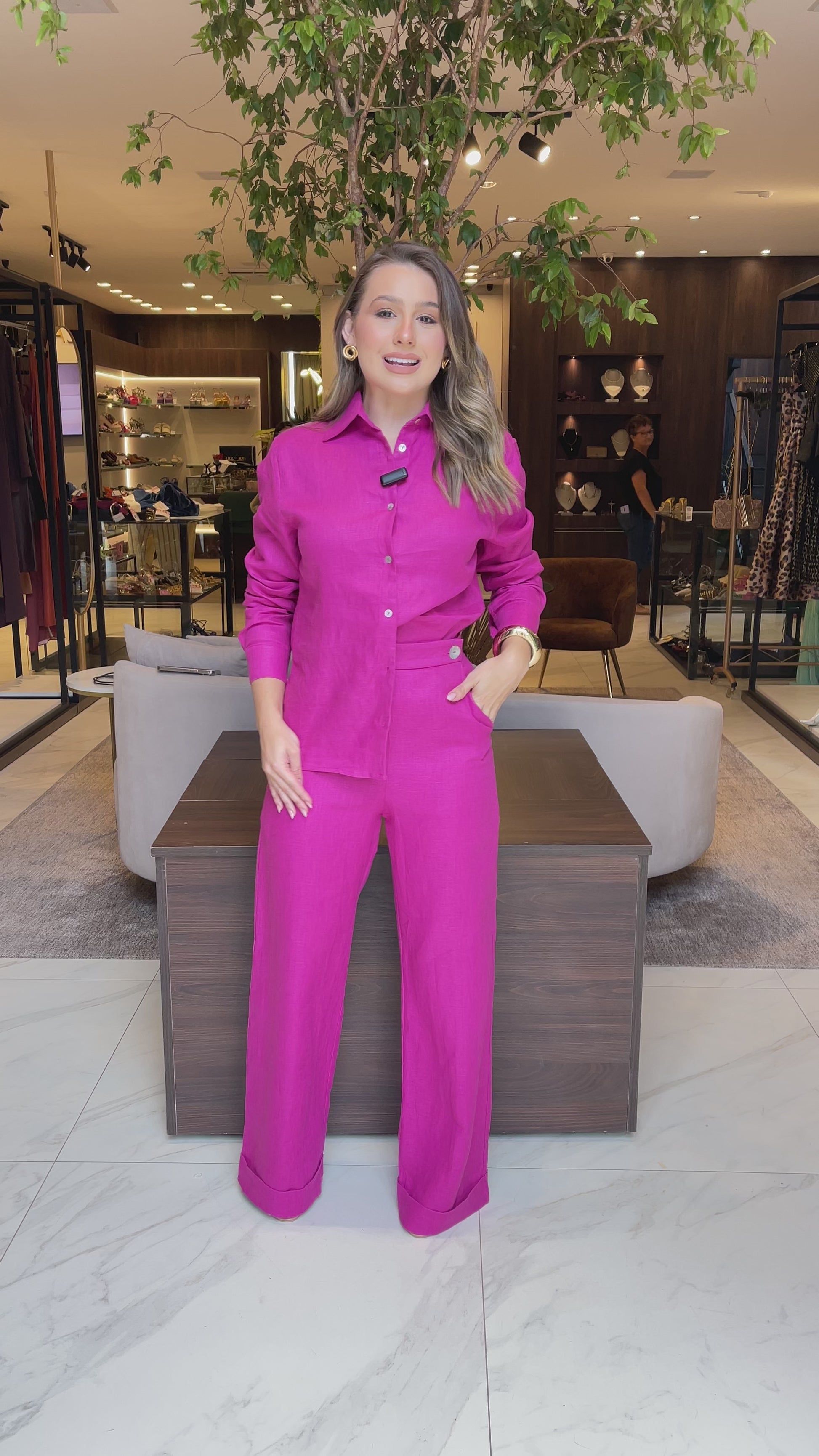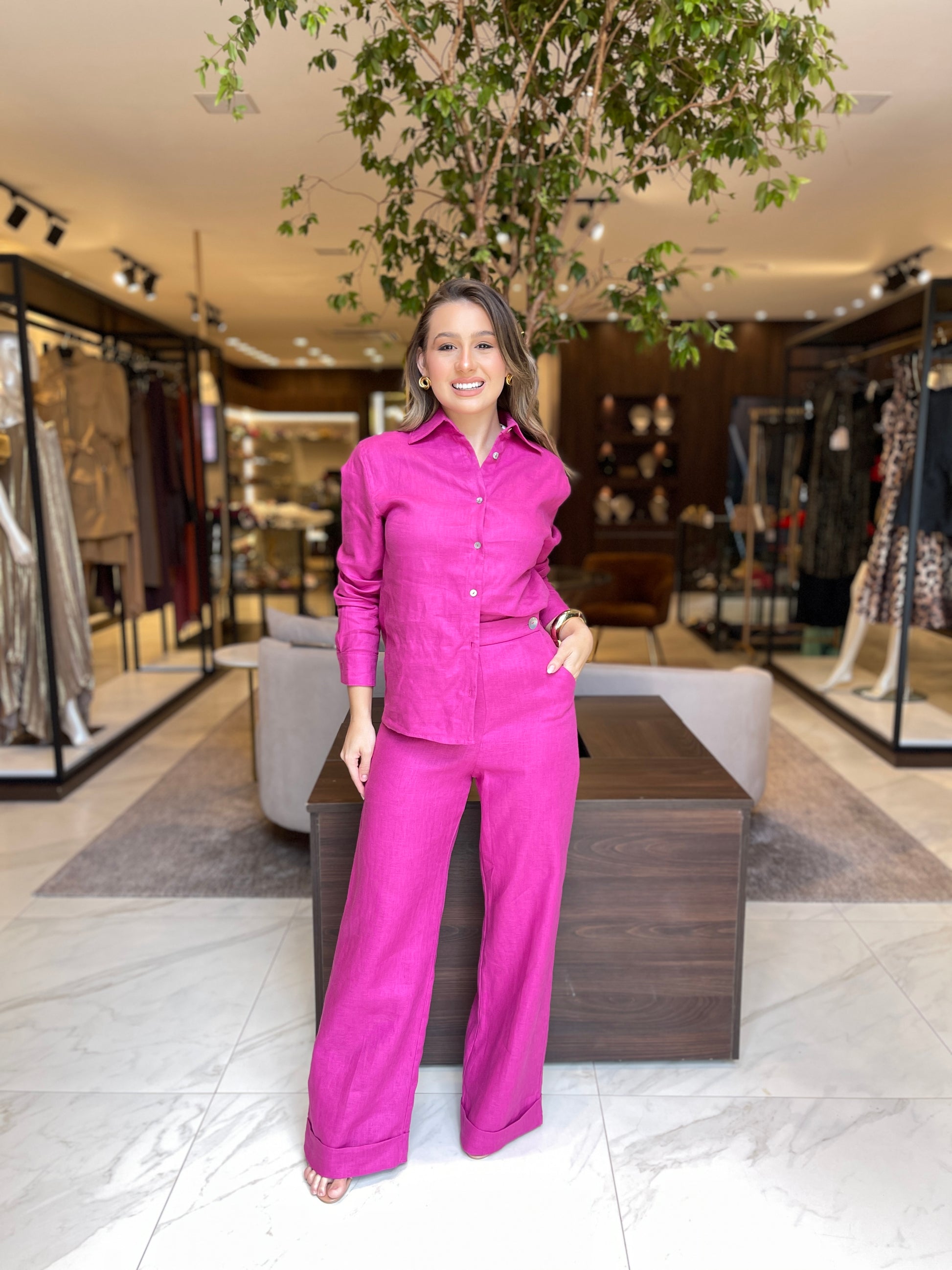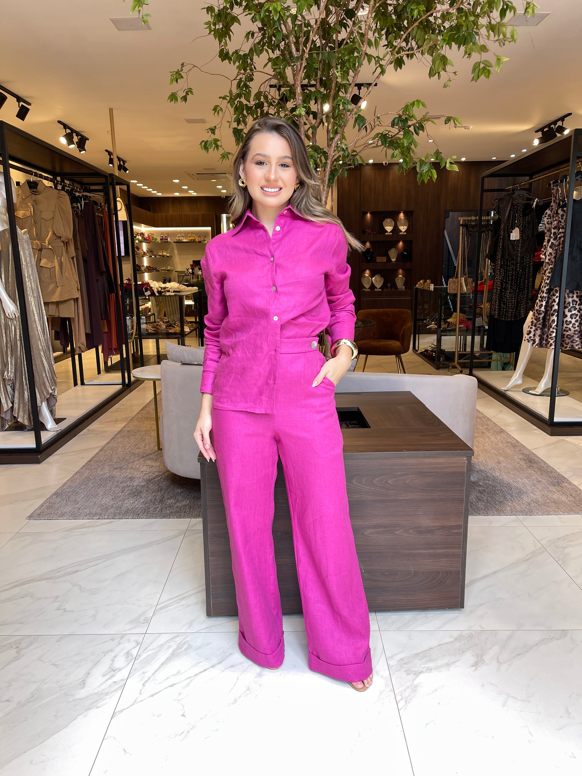 Camisa de mangas longas em linho, possui modelagem ajustada ao corpo destacando a silhueta com elegância, gola clássica e abotoamento frontal com botões pequenos.
